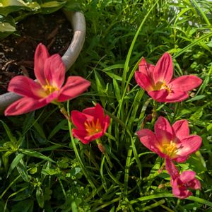 ゼフィランサス プライドオブシンガポール ①今朝の写真です。②昨日はもっと赤く咲いていました。 タイタンビスカスと、ネコノヒゲ
