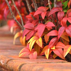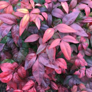 紅葉したオタフクナンテン 2022-10-17 残念ながら,ナンテンとは違い,本種には花や実はほとんどつかないらしい。