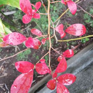 紅葉: 五色南天(オタフクナンテン、オカメナンテン) ニ株なのですが、みる角度によってハート♥️に見えましたよ。