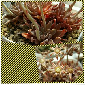 寄せてみた。なんとも、、、。 渋目なひと鉢になりました😊💦 右上の「銀天女」さん。 左下の「テトラ」さん。 が、渋い良い色してるからですね。 う〜ん、好きだな〜( ◠‿◠ )