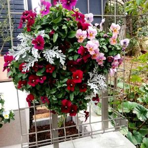 リース寄せ植えがモリモリです😆 ビオラのお花が小さいのは窮屈だからなのかな? でもこれはこれで可愛い💕です。