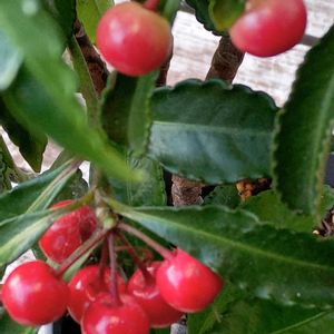 🔴🍀🔴 万両の実が 良い感じに 色付いて来ました 🪴鉢植えで 室内での 冬越しです💮💮💮