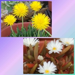 黄色い三時草 三時頃になると咲き出します 白い細雪 色違いに見えるけど属名が違う多肉植物です