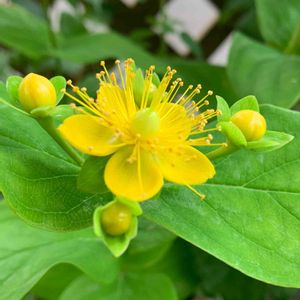 切り花を挿し木した、ヒペリカムです ピンク以外の何色の実がなるか❓ 楽しみです 赤が緑のどちらかだと思いますが⁉️