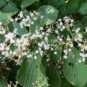 ガマズミの花 裏庭に咲いています😫 こんなのですみません😣💦 10日程前に満開でしたがpicを忘れているうちにお花はもう終わりに成りつつですね😵
