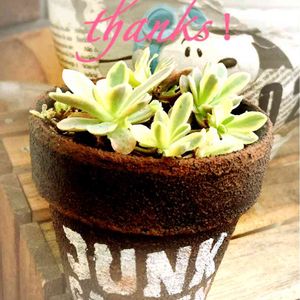 最近は自然災害等で気持ちも滅入ったり、プライベートでもなんやかんや ごちゃごちゃな整理のつかない気持ちで過ごしてます😓 そんな中sweetbasketさんの プレゼント企画に当たりまして😆 素敵リメ鉢が届きました♡ 何を入れようか悩んでると 娘がポチってくれた可愛い子が届いたので 早速植えました😄 もりもり育って欲しいな💕 sweetbasketさん❣️ この度は本当にありがとうございました♡ 大切に使わせて頂きます😊