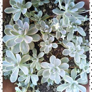 いい時期になって来たので子持ち蓮華錦 鏡花の販売を再開しようと思います(°▽°) オロスタキスは春植えのやつは花芽が出やすいので夏場に小さいのをカットして植えつけますが腐るのを恐れて辛め管理をしたせいで大きくなるのに結構かかってしまいましたΣ(゚д゚lll 最近の涼しさで子供がぶわっと出て来ましたのでやっとの再開ですね(-。-; 最近、子持ち蓮華錦が花屋とかで見かけるようになりましたが花芽がついてるのを出荷してたりしてるのを見て、なんだかなぁーって思います!。゚(゚´Д`゚)゚。 多肉って増やせるのが面白いんであってなんでわざわざ枯れるしかないないやつを売るのかなー、ロット売りなのはわかるけど性質をわかって売らないと詐欺っぽいことないですかね? 花芽がつく前の子持ち蓮華蓮華って成長点がキュッとなって可愛いは可愛いけど、お金もらうならちゃんと仕事しようぜーと思いました! 後世にちゃんと残すなら斑の確定とか、選別とか、売って大丈夫な時期とか守ってほしいものですね(°▽°)