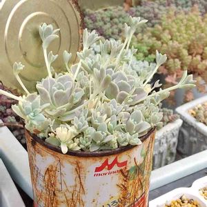 昨年ミルク缶に植えた、 子持ち蓮華錦 ぎゅうぎゅうになりました💕