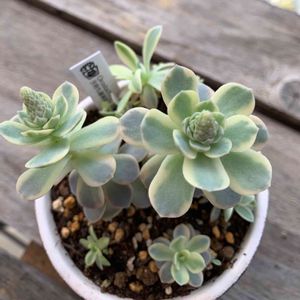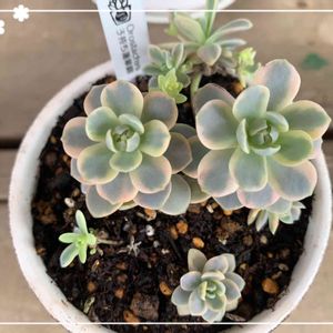 イベントで購入した 子持ち蓮華錦🎶 子持ち蓮華も可愛いですが 模様が入っているこちらも 可愛いので、どちらかで すごく迷いましたが、 子持ち蓮華錦にしました🌱✨ ふちがピンク色で 可愛いですねっ💕 順調に育ち沢山 増えて欲しいですね✨