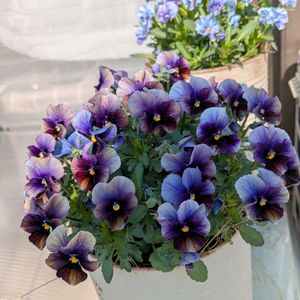 ビオラ ヌーベルヴァーグ✨ 秋のお迎えでは白地に紫、冬は薄いブルー、春はアンティークカラーに🤗 今年は寒さが続くと思ったらいきなりの夏日で切り戻しのタイミングがつかめない💦 伸びてないのでこのまま見守っていこうかな