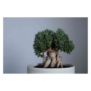 仕事が遅い😔 やっと植えました。1ヶ月? jillさんの盆栽仕立ての紫晃星に憧れて、見た翌日には手にしていたのに💦 hideしゃんに渡したものと同期です。 待機中に少しのびてしまい、夏の蒸れも考慮していきなり根っこ出してみました😁 (jillさんに、2~3年埋めて育てると根が太るって教わりました) セキグチタカヒトさんの男前な鉢、少し狭めなので夏を越せたらまた考えます❗ 小さい方はモリモリガーデンさんの可愛い鉢😃 切って挿すだけときいて、植えるときにやってみました。 どちらも元気に育ってほしいな🎵 うちにはない質感とシルエットで、どこにおいても目立ってます😁