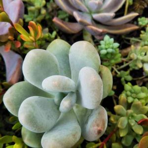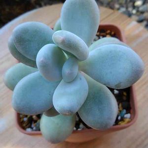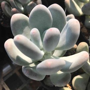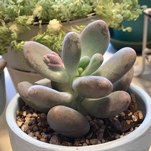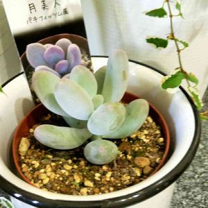 近所の義実家から可愛い多肉ちゃんを貰ってきました。植えるのが楽しみです♡ どうやらパキフィツム属 月美人のようです。お化粧したような質感とぷっくりした葉がまさに月美人♡