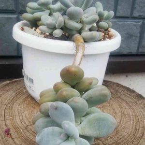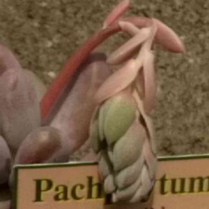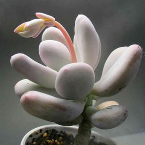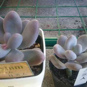 月美人(パキフィッツム属)😅とのこと……何語でしょうか?! よくわからないですが、将来を期待させる美多肉さんです(๑•ω•๑)♡体長7cmくらい右上に多肉植物専用肥料をあげてます。