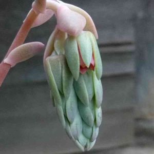 パキフィツム (月美人) 去年の母の日に息子からもらったうちのひとつ 頭でっかちで重いから何かにつけボロっと葉をもぎ取られてしまいこんな歪なお姿に😱