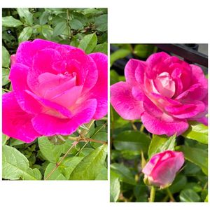 おはようございます☀️ 昨日に引き続き 昨年から名前でモヤモヤしていた薔薇🌹 すみれさんのお庭にお邪魔して やっと解決しました❣️ 昨年 フランソワジュランビルの挿し木をいただき 返り咲きまでしてくれて💓 でも… ちょっと違うかも🤔 今年の 左が すみれさんの庭の花🌹 右が ウチのの庭の花🌹 これでしたね👏🏻👏🏻アイスバーグ💗 ということは フランソワさんが居ない😅 満開のフランソワさんをカットしてもらい 早速挿し木にしました〜♪ ありがとうございました💓