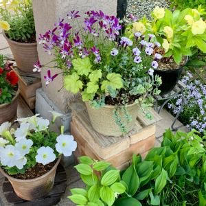 玄関 花*花🤍🌺🌼🤍 <春の寄植え> 春を楽しんでます.....*\(^o^)/*