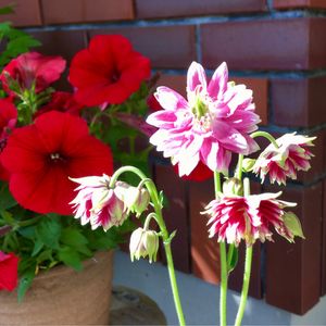 玄関 花*花 <西洋オダマキ>🌸 鮮やかに、咲笑(*´∇`*)♪