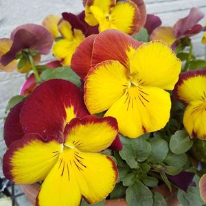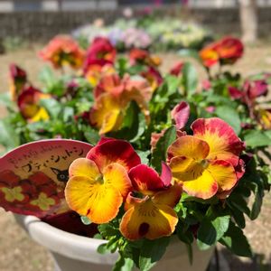 パンジー✾プティ・シャトン🌸🌿 プティ・シャトンは『かわいい子猫』を意味するフランス語が由来とか! 子猫を模した中輪のユニークなパンジーのシリーズのうちの一つ‘マーヤ‘です💕 レッド&イエローの明るい元気な小猫(ΦωΦ)