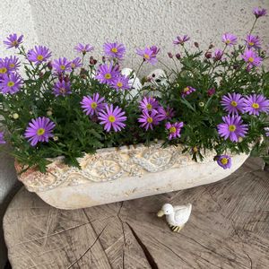 ブラキカム ブラスコ💜 可愛く 咲いてますよ💕 ハーブ🌿苗 少し 買いました〜、 地植えも 良いんだけど、絶対 分かるよう〜に 鉢植えで。。。 それを 花壇に 鉢植え🪴ごと 半分 埋め込んでやってみます❗️ 名札📛は 絶対 無くさないよう〜に しよう〜‼️