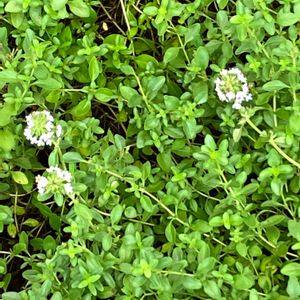 庭のグランドカバーとして2年前に植えたコモンタイムが広がって、可愛いお花がいっぱい咲いています。 春、秋、春、秋とマメに地面に直接挿し木しました。