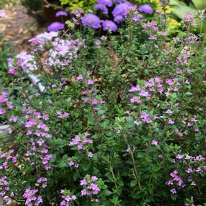 コモンタイム 花壇に植えたタイムのお花が咲き始めました🌸 小さなピンク色のお花が素朴な感じで可愛い💕