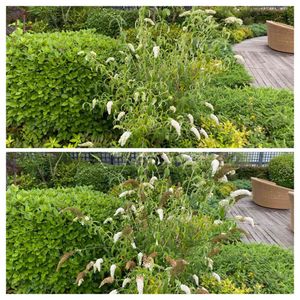 今日の仕事日記... 先ずは、ブッドレア?の花柄摘み、、 下:ビフォー 上:アフター 個人的には、ビフォーの風情が好きですが、、😉