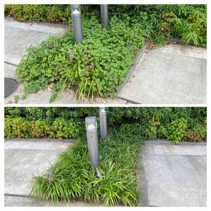 今日の仕事日記...朝一の除草 上:ビフォー(それなりにきれいに蔓延った草、名前はわかりません、、) ※追記...カレックスかも、でした。 下:アフター