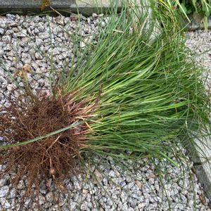 今日の仕事日記... 階段植栽の中に大きく育った親玉を 鎌だけ使って抜根しました、、 根っこに球根の様なものが付いてます この子の名前分かる方教えてください