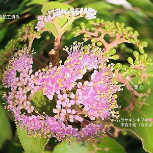 紫式部 中吉小吉(なかよしこよし) お花❁🩷💕と、🟢実 実はこの後秋色に 4~5年になるだろうか 今年も可愛らしく咲いてます。 小さなお花の集合体