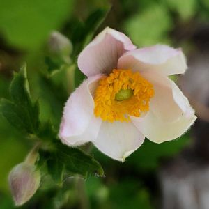 アネモネエルフィンファン❁ 今年も咲きました。 この暑さででしょうか、 葉が痛み葉の数が少なく (´Д⊂グスン(❁3~4㌢程鉢植え) 葉が斑入りタイプ まだ開花せず ③↖はアジサイ❁🤍アナベル