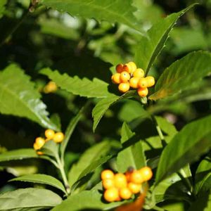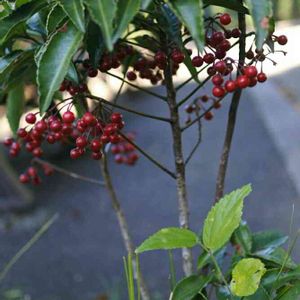 皇居東御苑 千両の大きい株 紅くなりかけです。