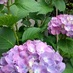 アジサイ 紫陽花 色付き変わりゆく紫陽花 挿し木!友から我が家へ3年目かな!我が家では赤が入り紫色になりました。友のは真っ青😊 土によって変わる紫陽花!不思議ちゃん🤗💕可愛い〜!