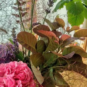 昨日の朝にチョッパー✁して紫陽花・バラインピアッチェ・イングリッシュラベンダー・モフモフのスモークツリー!ドバーと入れてパシャリ、出勤(笑) 昨日の慌ただしい日でした🤭 昨夜から雨が降って昼頃には上がりましたが、ドよ~んとした天気です。 雨の重さに耐え切れずにおじぎをしていたアナベル、ピラミッド紫陽花。頭を持ち上げてあげようと手を回したら(痛い😅😭)やられました! 行きつけの病院はお休み。救急に電話📱・・・色々聞かれました。絞ったり冷やしたりしないで下さいと。もう絞って洗ってしまった後のことでした💦💦💦この後発疹、息苦しい、事があったら我慢せず救急車を呼んでと。 その後異常なく・確かに痛い腫れてきた。なのに憎きハチ退治しました。こちらからは全然見えず、お隣さんの方から回らしてもらい見つけました。かなりの大きさ!殺虫剤噴射。見えないのに噴射してたので逃げていなかったので助かりました。 巣ごと無事退治! 今年は毛虫も多く(デカイ)かなり警戒してたのですがまさかの事態に焦りました😰 今日の出来事でした。 笑ってらってくださいトホホホホ🥺 皆さんも気をつけて下さいね! ま、私みたいな方はいないと思いますが、用心、用心❢