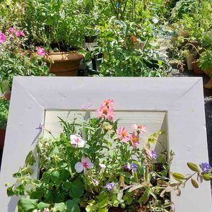 初額縁 寄植え 今朝早くから試行錯誤の末出来上がりました。ちよっとさみしいですがモリッとなるのを待ってみます( ꈍᴗꈍ)💕