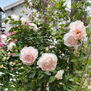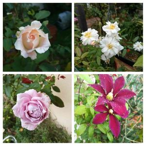皆さんのお庭、秋の薔薇が美しくて羨ましい〜😚 うちのポツポツ咲きの薔薇たち☺️ ロココ スノーグース ノヴァーリス クレマチスニオベ