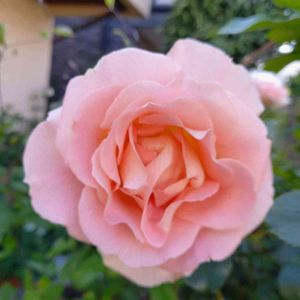 午後は雨が降ってきました☔️ 大きなコサージュぐらいのロココ🌹 挿木から三年生になったので 少しずつ蕾が上がってきました まだお顔ははっきり見えませんが… (待ちきれず📸しました ☔️💦) 淡いアプリコット色の波うつ花びら たまりませんね~~💓