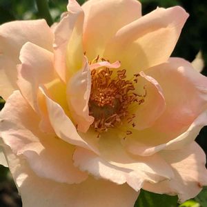 ロココ2回目。 今日の暑さでパッカーン❗️大きく華やかに開花。ヒラヒラの花びらに金色のシベがのぞきます。