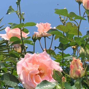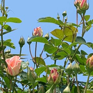 以前に絵で投稿したロココが明日にも咲きそう。上にどんどん伸びる剛直な枝なので誘引しても上ばかり賑やかに。 今日はきれいな青空。気温も上昇。ばらの開花も進みます。 これから天に向かい花開く蕾たちにコロナの終息の願いをこめて。
