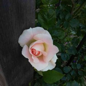 おはようございます😃 我が家の🌹、新入りつるバラのロココちゃんが咲きました🧚♀️ まだ小さい苗なので、株の充実のため、蕾から咲き始めで、✂️です。来年たくさん咲いて欲しい可愛い💕お色です💓