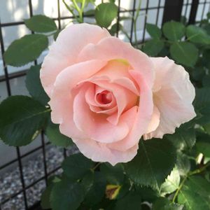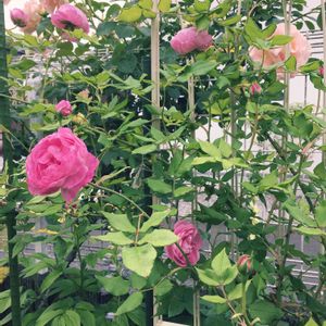 "ロココ" いつも高いところで南側を向いてしまうロココ。 今年は低めに誘引して、花が咲いてからこちらに向くように枝を操作したら理想的に並んでくれました💕