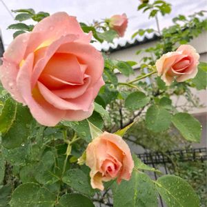 CLロココが、一つまた一つと咲き始めました。こんなに、綺麗に咲いてくれたのにまた雨☔️がー