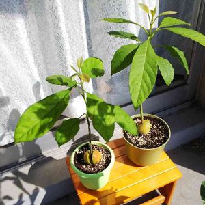 おはようございます😄 毎月24日は、アボカドの日🥑だそうな😆なので、5/21にデビューした トロピカル屋アボ&カボです👏😁 葉っぱも増え、只今 元気に成長中🎵💕