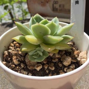 織姫に子供が♡可愛いけど、親の下葉が色変わってて新しい葉の更新と考えていいのか多肉初心者にはわからない〜‼︎w