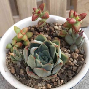 エケベリアたちの寄せ植え。 もっとむぎゅむぎゅのむっちりにな〜れ。
