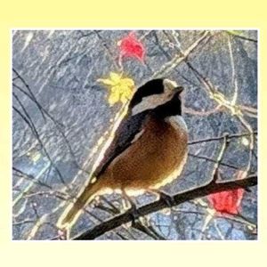 番外編ですが 今日デッキ西側で カラフルな背景で撮れた山雀さんを 額縁に収めて🖼️ 🏷️【額縁シリーズ】