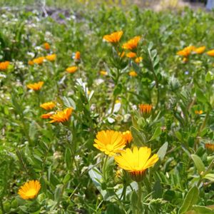 里山散策にて 2025 年4月11日、13日撮影 ❶↗ヤマブキ(八重咲き) →フユシラズ ↘オウバイ ↙クサノオ ↖ペチコート水仙 ヒガンバナ科 スイセン属 土手に咲いていました。 黄色いスカート状の花、葉は細い線状でとても印象深い姿でした。 「ナルキッスス・バルボコディウム」と言う学名(覚えきれないです(;・∀・) ❷八重咲きヤマブキ バラ科 ヤマブキ属 別名 ヤマブリ ❸クサノオウ(草の黄) ケシ科 クサノオウ属 林の側に群生していました。 遠目からは菜の花に見えました。 ❹オウバイ モクセイ科 ソケイ属 半つる性 ❺フユシラズ(冬知らず) キク科 カレンデュラ属 別名 ヒメキンセンカ どの花も明るい黄色で素敵です。 🏷月曜日にビタミンカラー