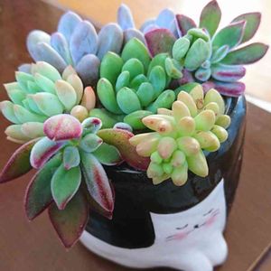 おはようございます✨前に買ったダイソーの🐈鉢に昨日のハムシー、春萌、スノージェイド、星美人さん達を一緒に植えちゃいました😆