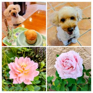 こんばんは🌛 今日は久しぶりにドッグカフェに行ってきました🐶💕 コロナからカフェは土日だけになってしまって…行くタイミングが合わなかった💦💦けど、やっと行けました。 ①バナナマフィン🍌を目の前にして、完全に笑顔になってます🤭 また咲かせてしまった薔薇 ジュビリーセレブレーション🧡 ミニバラ🌹可愛く咲いています🩷🌿 ②ローストビーフのベーグルサンド🥯にデザート付き🍮😋 ワンコのおやつはサービス🍎 美味しいパイやタルト🫖🍪😁