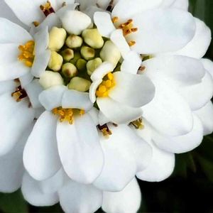 【No241 イベリス】 育てているイベリスが元気です。 イベリスという名は、スペイン🇪🇸の昔の言い方「イベリア」を語源としています。もともとイベリア半島に自生していたようです。 英語ではキャンディタフト。砂糖菓子のふさということで、こんもり咲く姿がお菓子の束のように見えるからです。 中国では屈曲花(マガリバナ)と言われます。太陽☀️に向かう性質があって、花茎が曲がりやすいからです。 宿根イベリスはイベリス・セルペルヴィレンスという種類で、トキワナズナ(常盤薺)とかトキワマガリバナとも言われます。常緑性です。寒さに強く、高温多湿は苦手です。 花のない時期でも、濃い緑の葉が主役の花を引き立てます。この時期は、白い花が主役にもなります。 花言葉「心を引きつける」は、太陽☀️に向かって花茎が曲がりやすいからだと言われます。「初恋の思い出」「甘い誘惑」は、花の甘い香りや可愛い💕花姿からでしょう。 可愛い💕上に育てやすい花です。