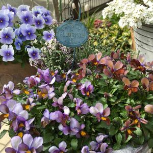 今日はポカポカ陽気💕 昨日お迎えしたお花で寄せ植えを作りました😊 白を入れたかったので、他の鉢からイベリスを拝借…😅